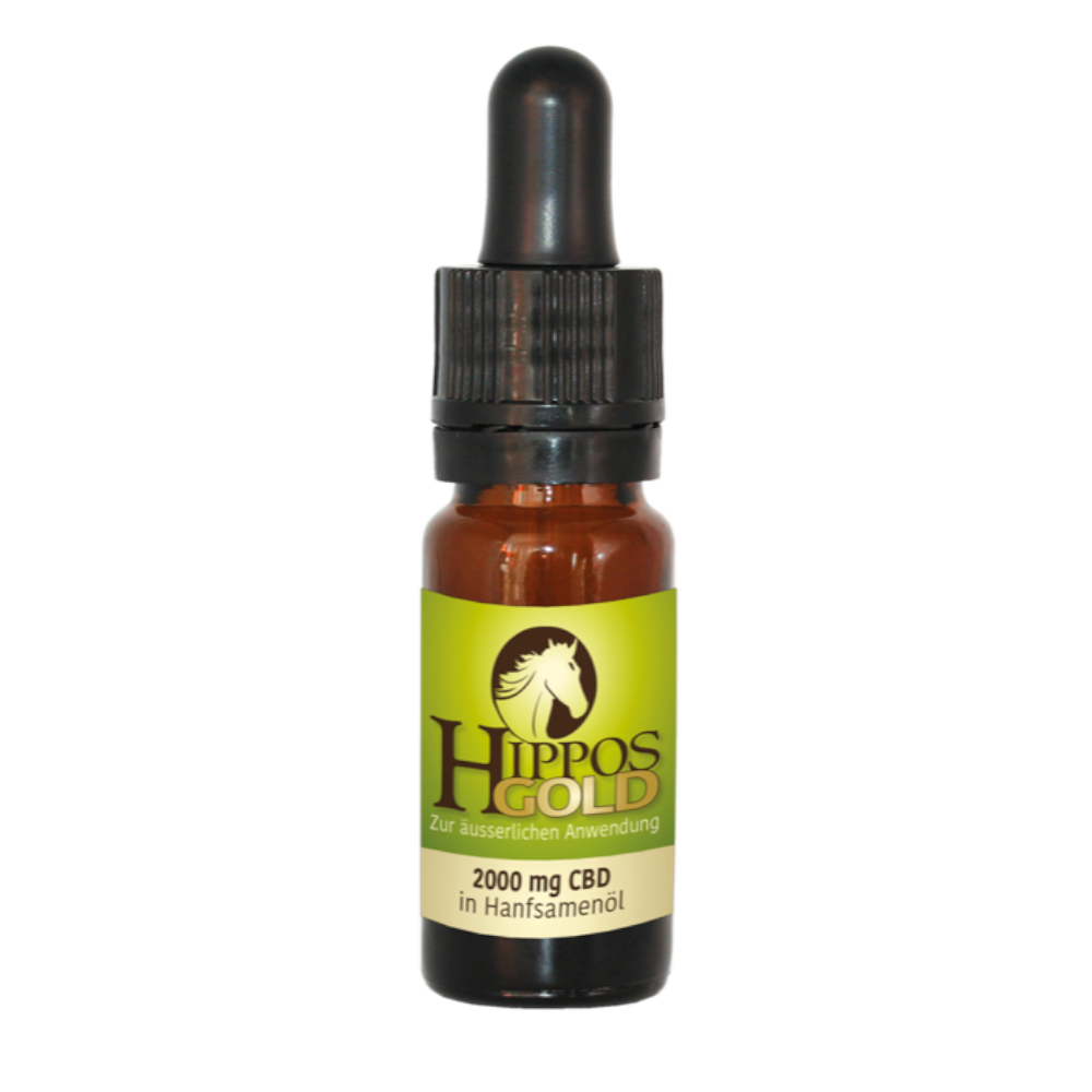 - Hippos Gold: 2.000 mg CBD in 100 ml – zur äußerlichen Anwendung bei Haut, Fell oder am Kronrand zur Hufpflege