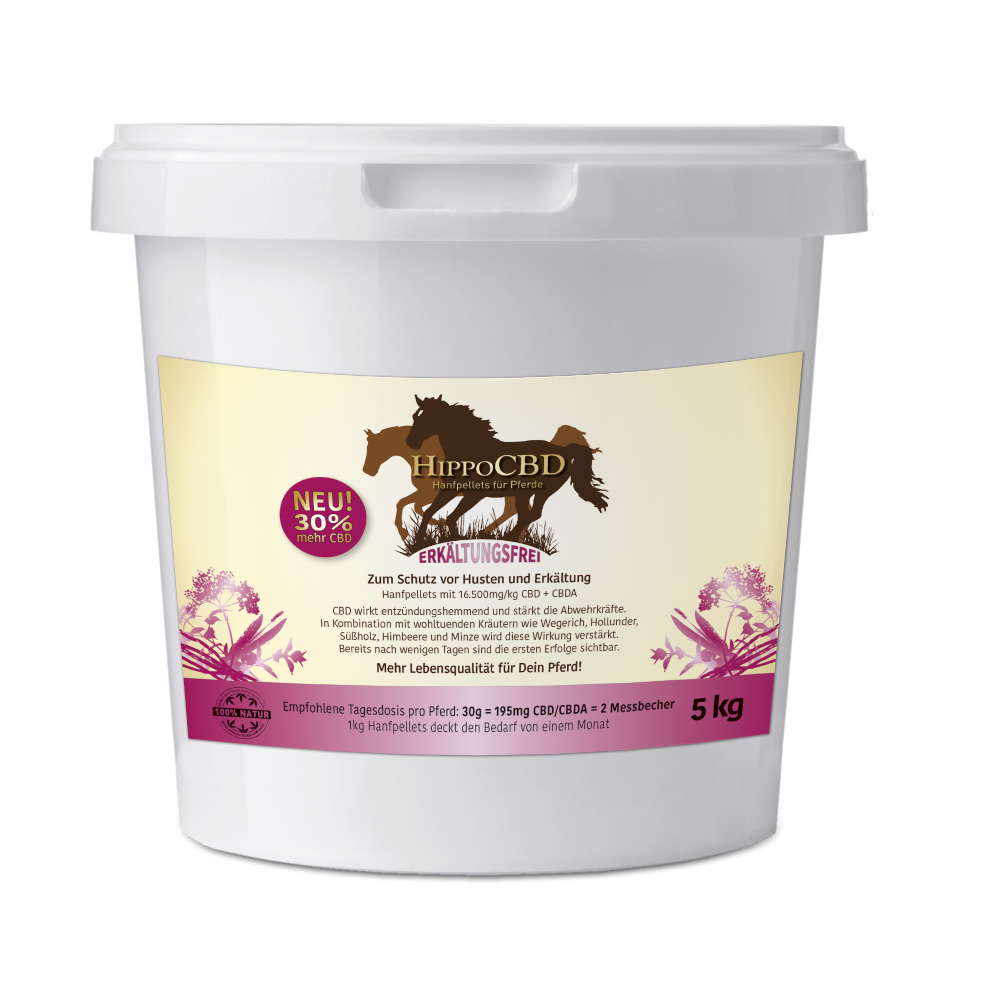 Stärke das Immunsystem deines Pferdes und gib ihm den idealen Schutz Der besondere Schutz durch extra hohem CBD-Anteil: 200 mg/Tag in nur 30 g HippoCBD-Erkältungs- und Hustenfrei ist 100 % natürlich und stärkt das Immunsystem indem es die Menge der Botenstoffe erhöht und so ein natürliches Sc...